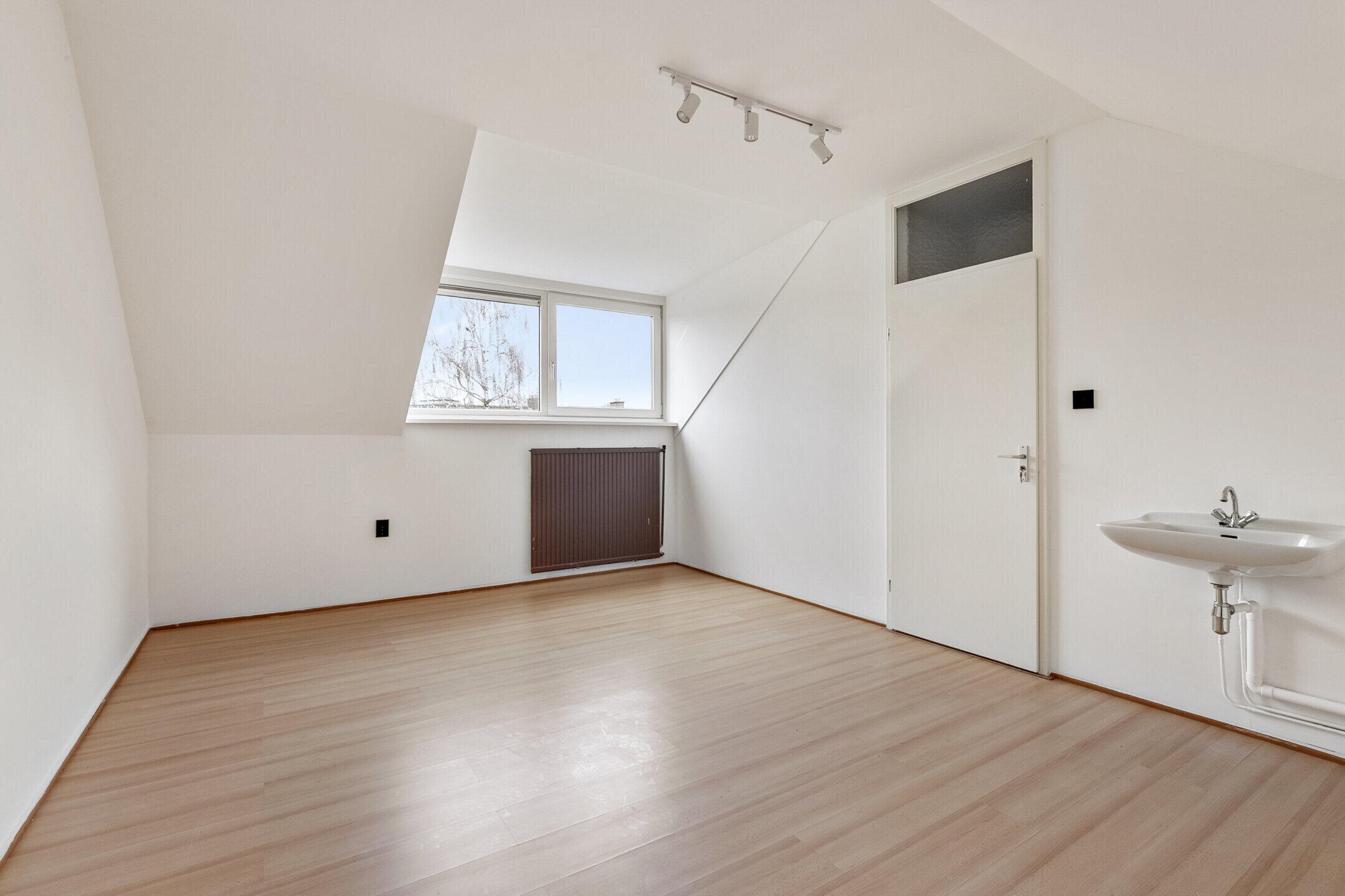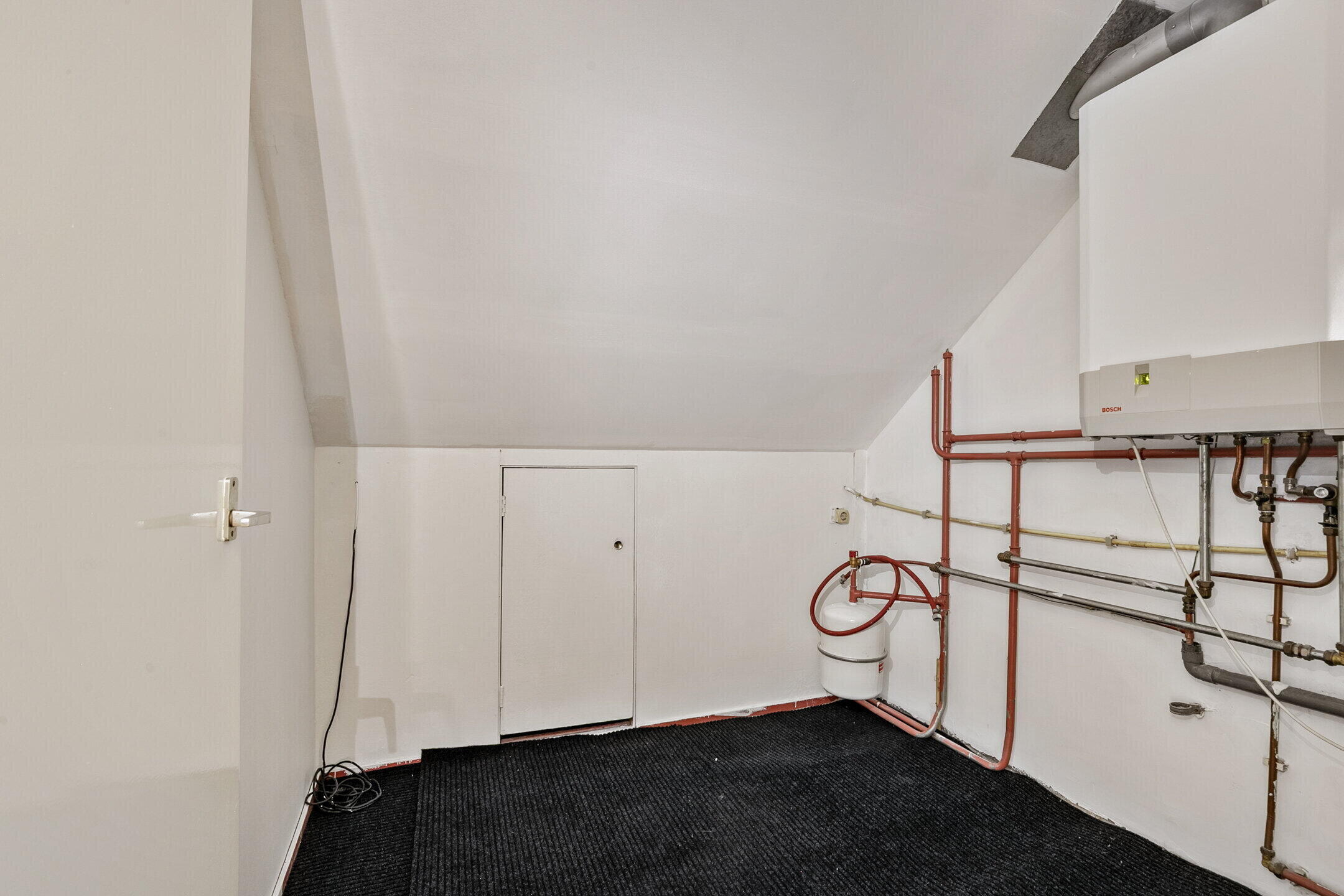 De zolderverdieping biedt een ruime vierde slaapkamer met dakkapel en extra bergruimte. Ideaal als ouderslaapkamer, werkruimte of tienerkamer. Ook bevindt zich hier de opstelling van de cv-ketel en de aansluitingen voor wasmachine en droger. Tevens is er veel opbergruimte achter de schotten.